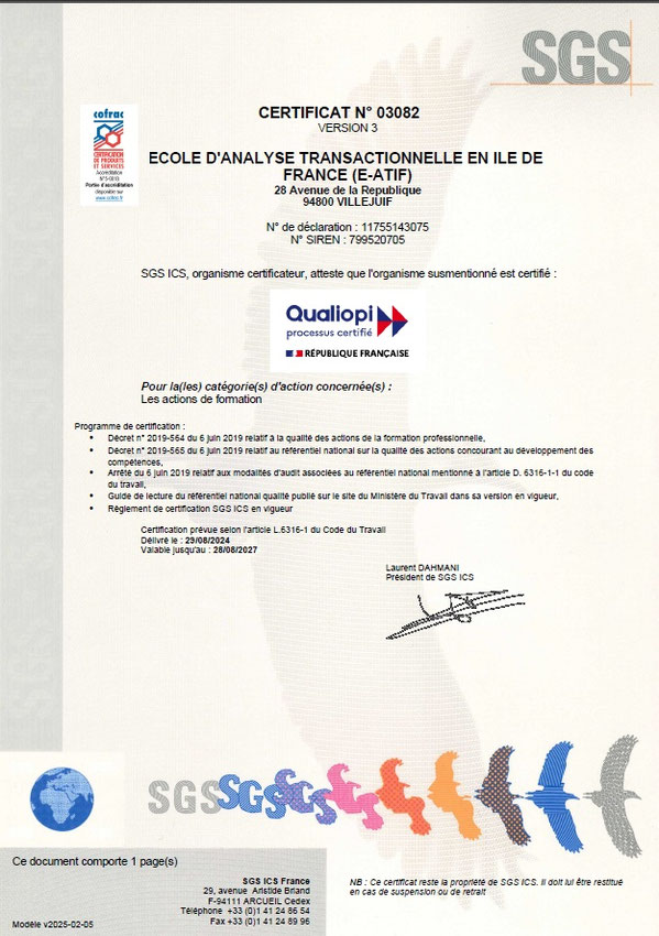 E-ATIF est engagée dans une démarche d'amélioration continue de ses formations et préparation à la Certification Internationale et bénéficie de la Certification Qualiopi depuis 2021